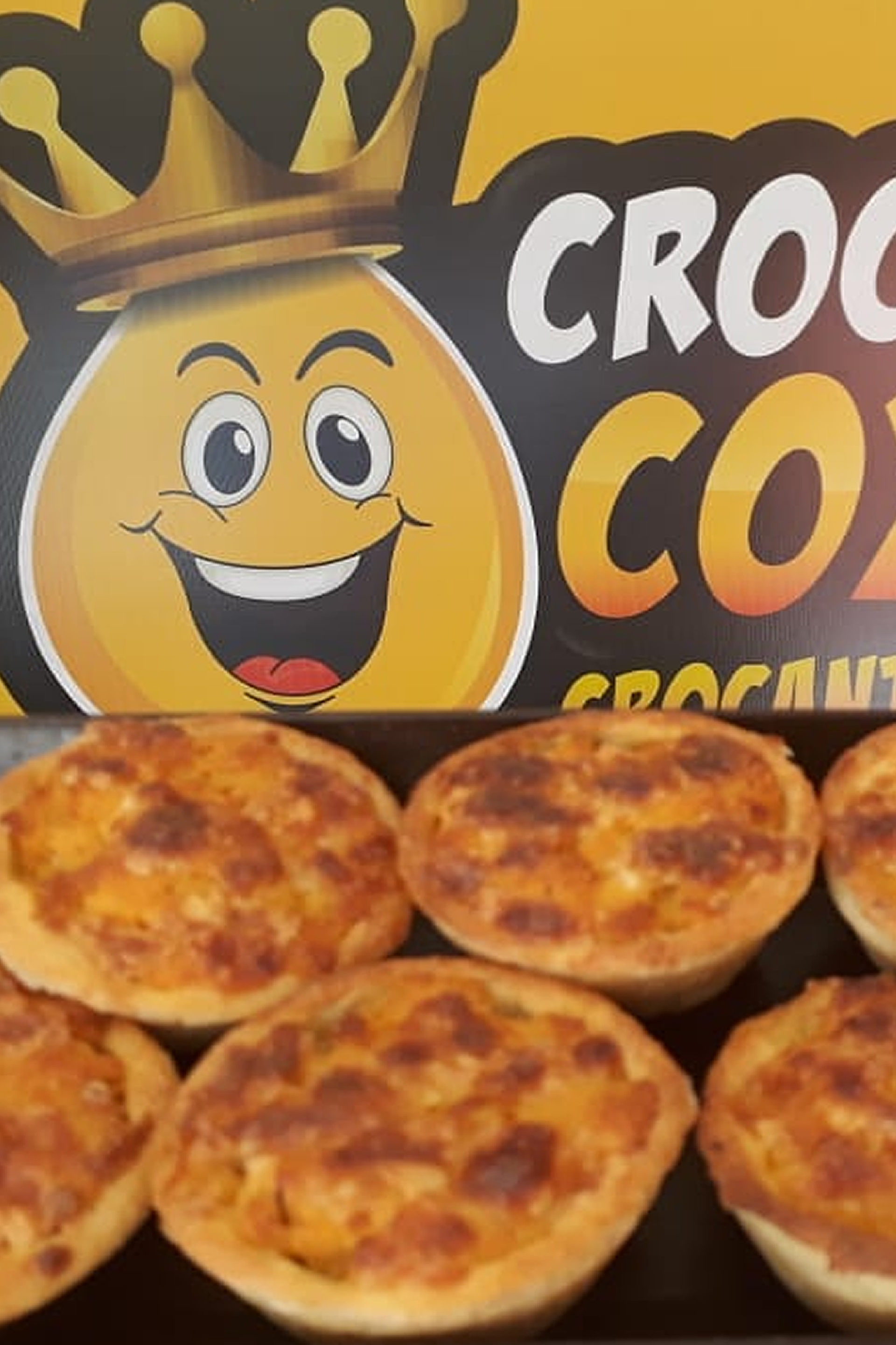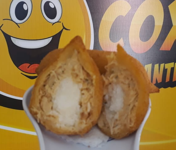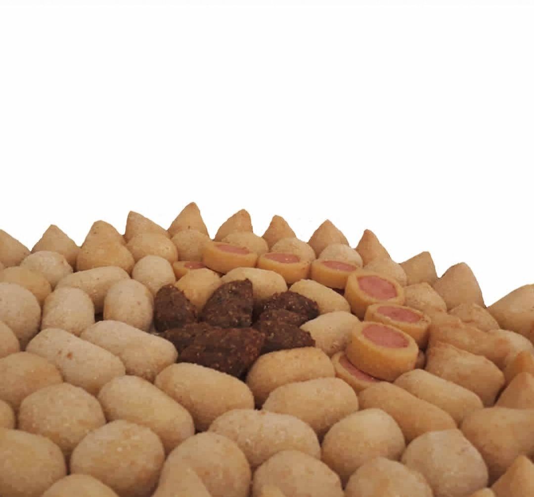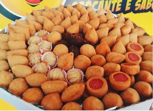 O que não pode faltar em festas? Salgados da Crocky King Coxinha, né. Tem que ter coxinha de frango, quibe, bolinha de queijo, napolitano e churros.