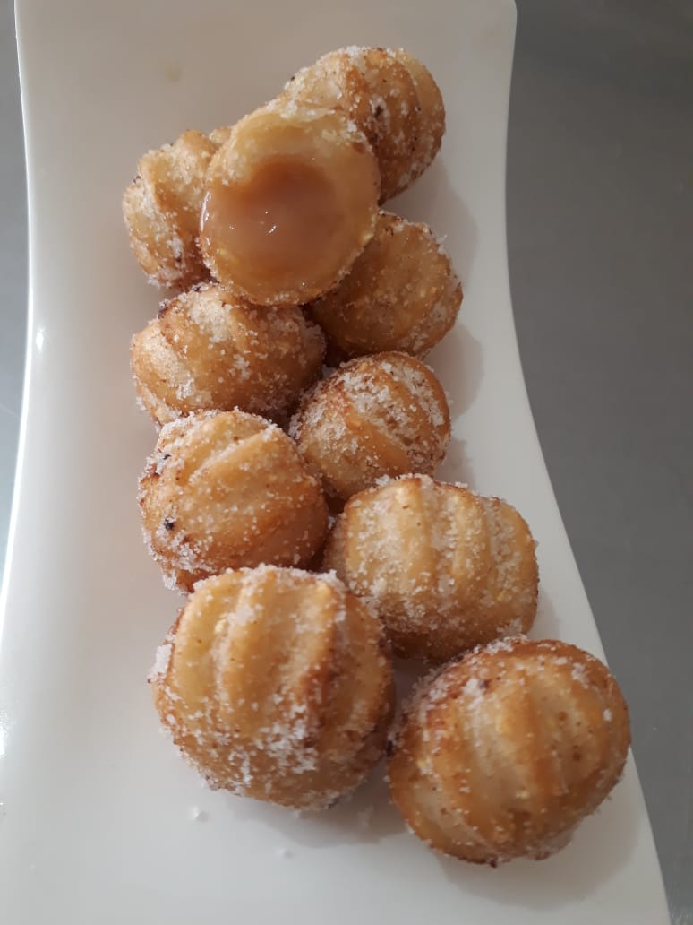 É o nosso churros com recheio especial: Doce de Leite ou Chocolate ao Leite.
