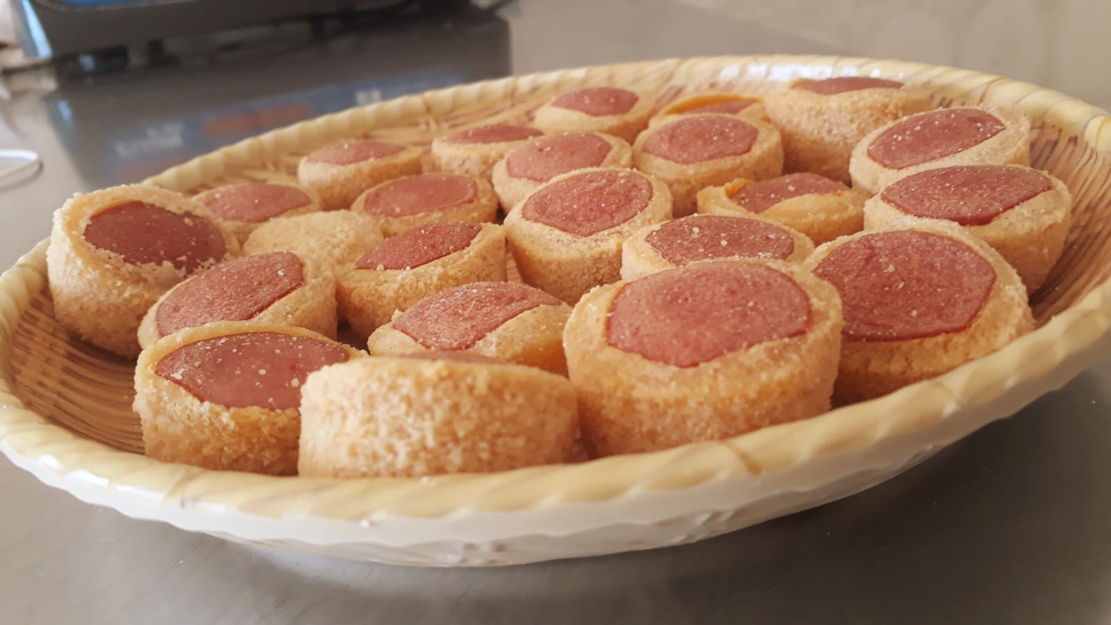 A massa dos nossos salgados é bem saborosa, contém mandioca,